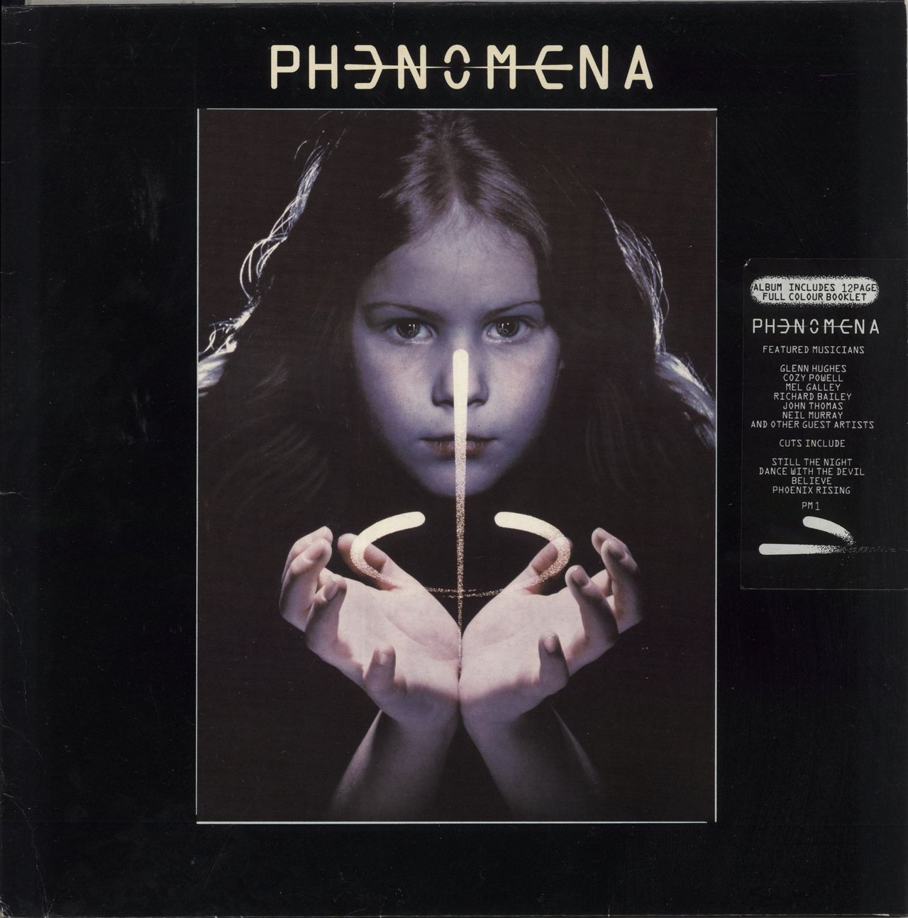 PHENOMENA Phenomena (1985 UK 9-track LP from the rock supergroup formed by record producer Tom Galley, Metalhammer founder Wilfried Rimensberger & Trapeze guitarist Mel Galley, also starring Cozy Powell, Neil Murray, Glenn Hughes & more. Thiscopy comes complete with a twelve-page illustrated lyric booklet & open hype sticker seal picture sleeve. The sleeve shows some moderate creasing, whilst the vinyl is clean & in Excellent condition with minimal play)
