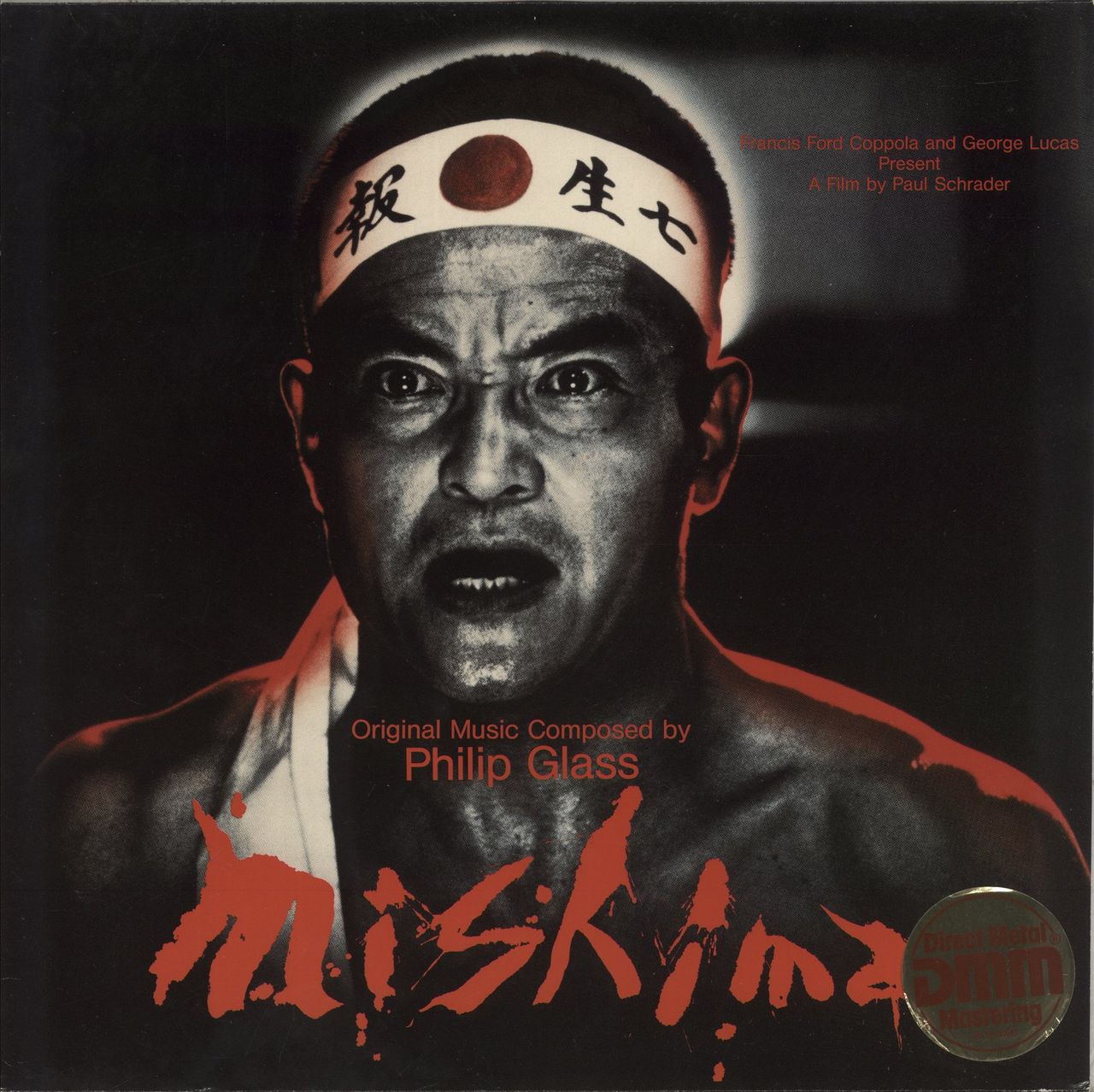 ORIGINAL SOUNDTRACK Mishima (1985 German Direct Metal Mastered 14-track vinyl LP, featuring Philip Glass' score from the soundtrack to Paul Schrader's movie, retelling the life of Japanese author Yukio Mishima, as realised by the Kronos Quartet. The sleeve displays light wear, whilst the vinyl appears barely played)