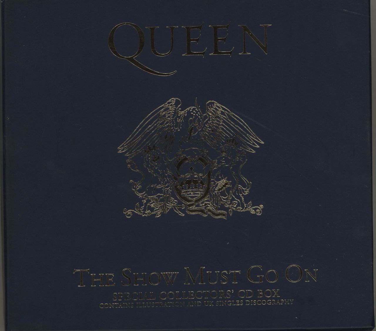 QUEEN The Show Must Go On (Special Limited Edition 1991 UK 4-track CD single box set, also including Now I'm Here, Fat Bottomed Girls & Las Palabras De Amor, housed in the gold embossed collectors' box complete with the fold-out illustrated print/ poster with UK singles discography. The box shows some minor age wear & the disc appears barely played CDQUEENS19)