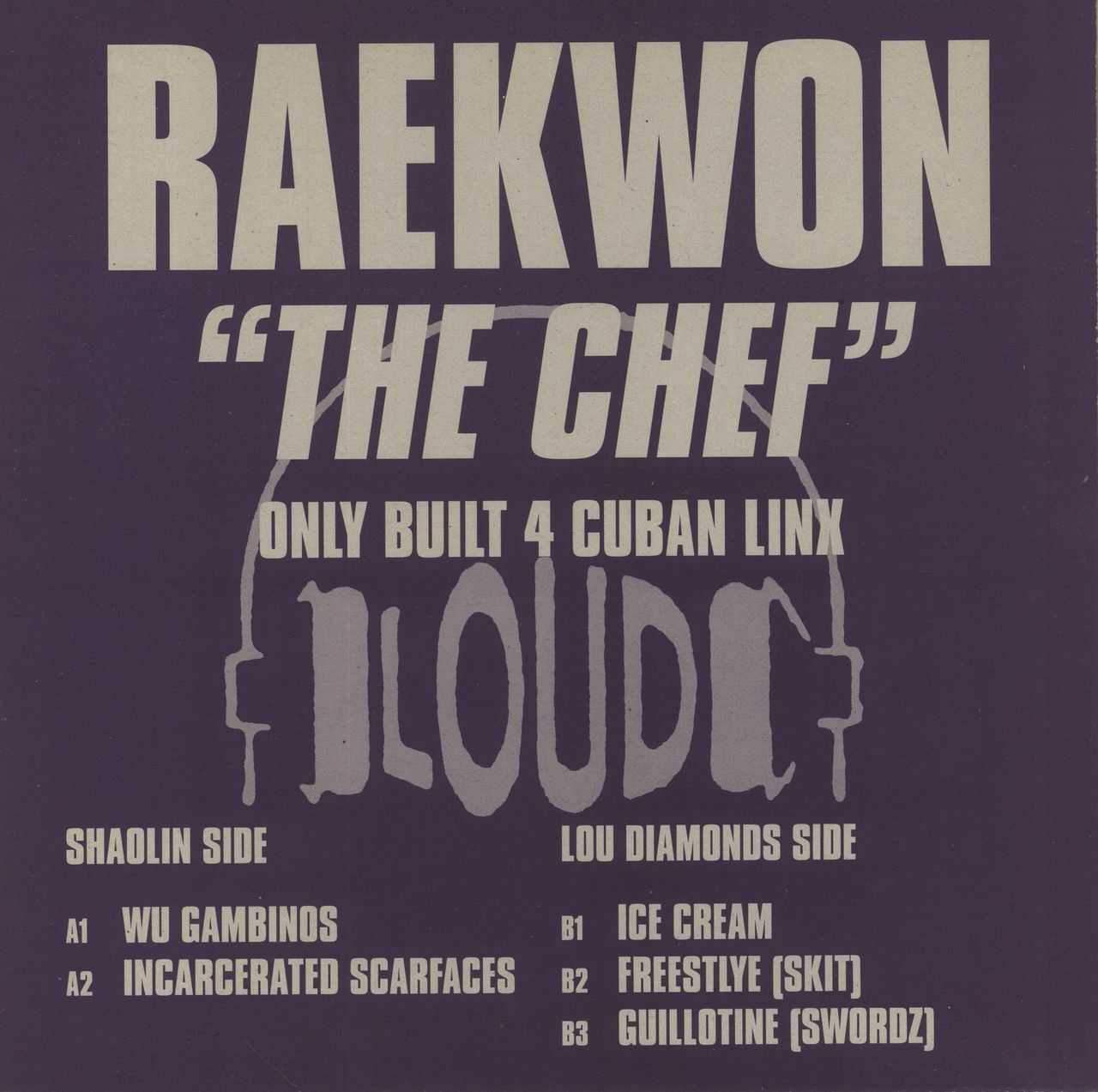 RAEKWON Only Built 4 Cuban Linx (1995 UK 5-track 12" vinyl promo for his debut solo album of the same name, which is considered one of the best Wu-Tang solo albums, produced by RZA. Matt picture sleeve. The sleeve shows a small split on the spine and some edgewear. The vinyl is Excellent with light signs of play CHEF001)