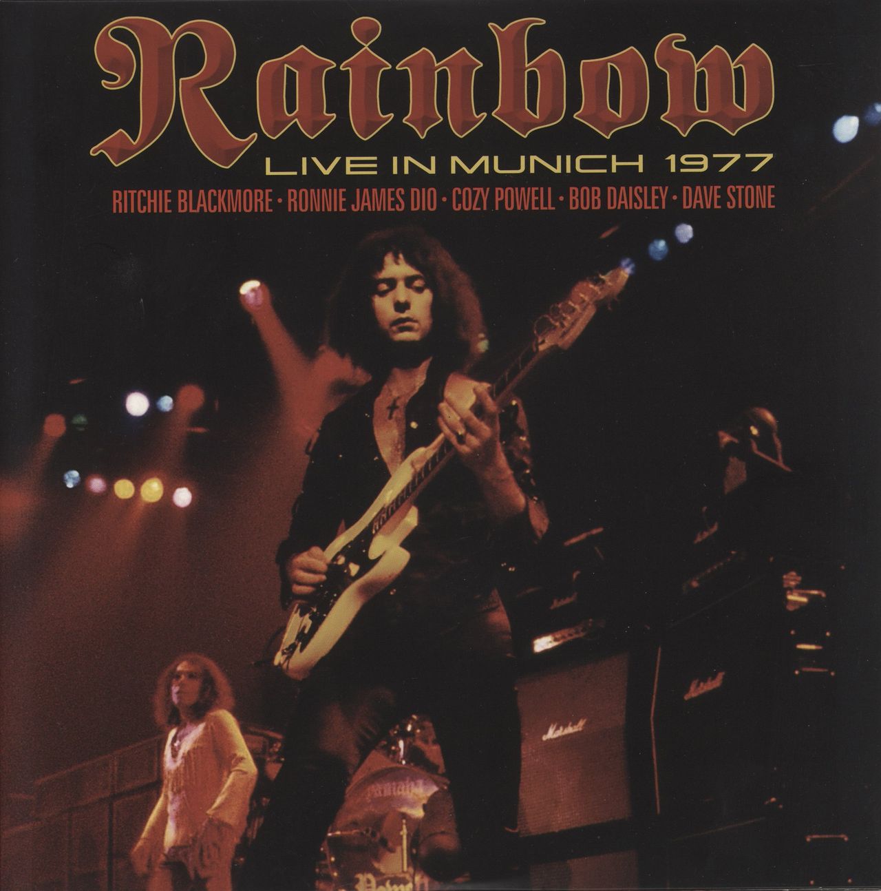 RAINBOW Live In Munich (2010 issue UK limited edition 8-track 2-LP set pressed on 180gram Audiophile Virgin Vinyl [released as part of the 'Back On Black' series] featuring their legendary live performance in Munich in 1977 for which Ritchie Blackmore arrived late after being smuggled out of Austria after a trouble with the police at a gig two nights earlier and seemed to inspire both the band and the audience to create a truly remarkable gig, gatefold picture sleeve. Both sleeve and vinyl remain in near mint condition)