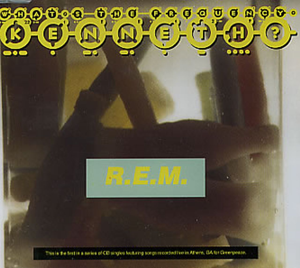 REM What's The Frequency Kenneth? (1994 UK limited 4-track CD single including Monty Got A Raw Deal, Everybody Hurts and Man On The Moon - all recorded live in Athens GA for Greenpeace, picture sleeve W0265CD)
