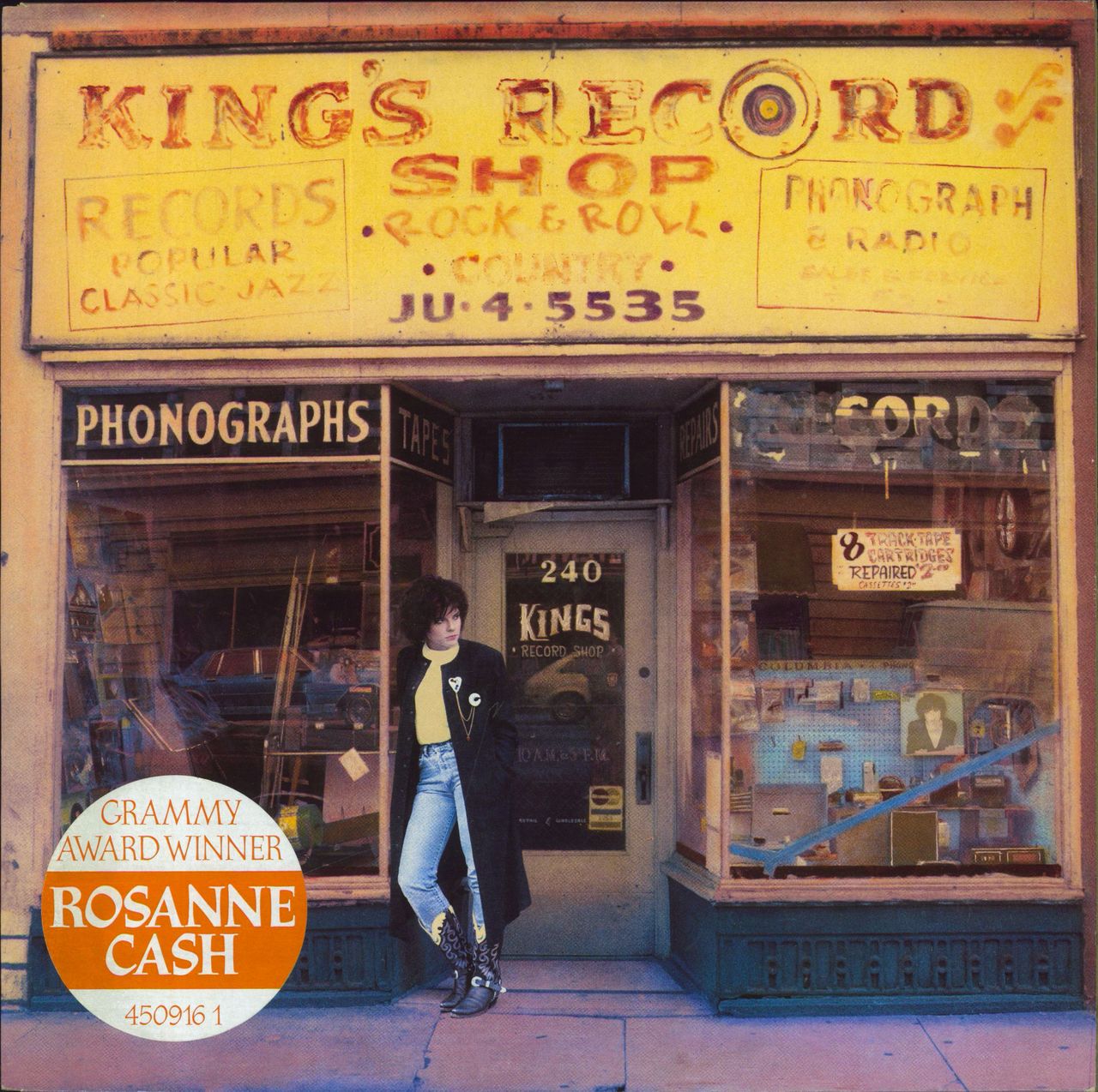 ROSANNE CASH King's Record Shop (1987 UK 10-track vinyl LP, the sixth studio album by American country music vocalist and daughter of the legendary Johnny Cash; including the singles The Way We Make A Broken Heart, Tennessee Flat Top Box, If You Change Your Mind and Runaway Train. Complete with illustrated credits insert, the 'Grammy award winner' hype stickered picture sleeve shows minimal shelfwear while the vinyl looks barely played)