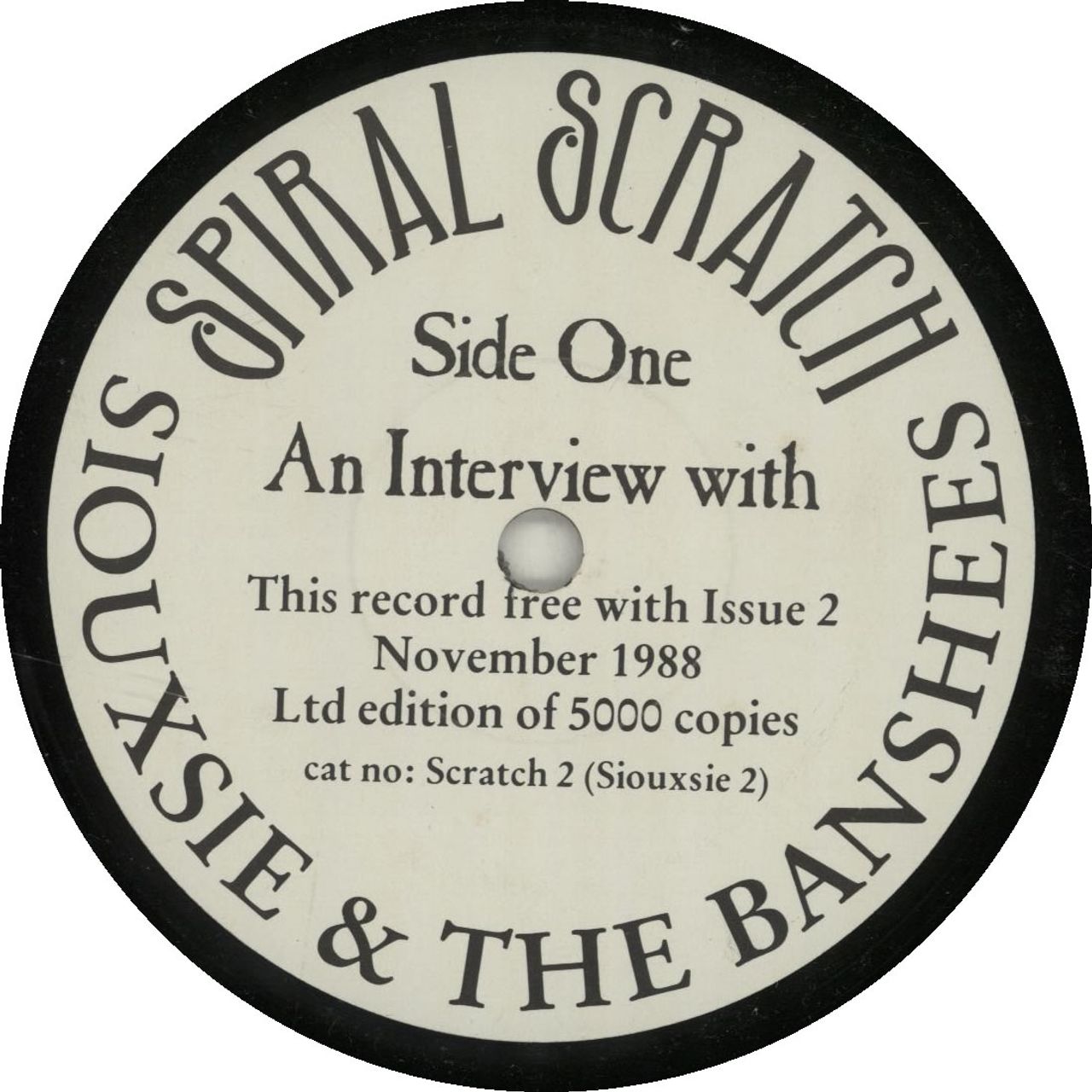 SIOUXSIE & THE BANSHEES An Interview With Siouxsie & The Banshees (1988 UK limited edition solid centre promotional 7" vinyl, originally issued with Spiral Scratch magazine #2. Issued in a plain die cut paper sleeve, the vinyl appears in excellent condition SCRATCH2)