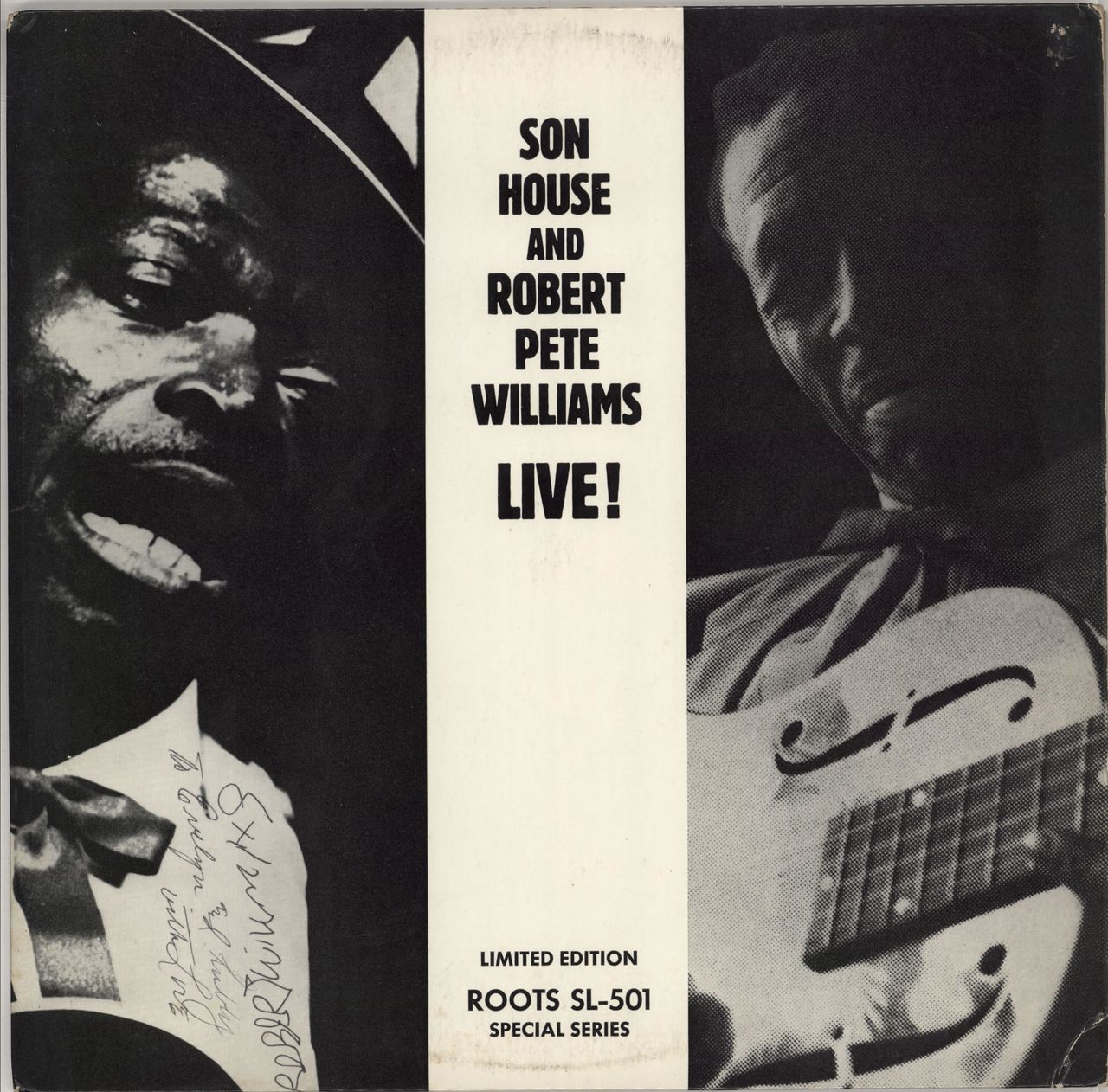 SON HOUSE Live! (Limited Edition 70s Austrian 9-track LP in the Roots Special Series, featuring Son House one side recorded in 1965 & Robert Pete Williams recorded in Hinterbrühl, Austria in 1966 on the second side, unique monochrome picture sleeve with facsimile autographs. The sleeve is Excellent with just a few indentation marks in the top right-hand corner. The vinyl is a stunning near mint SL-501)