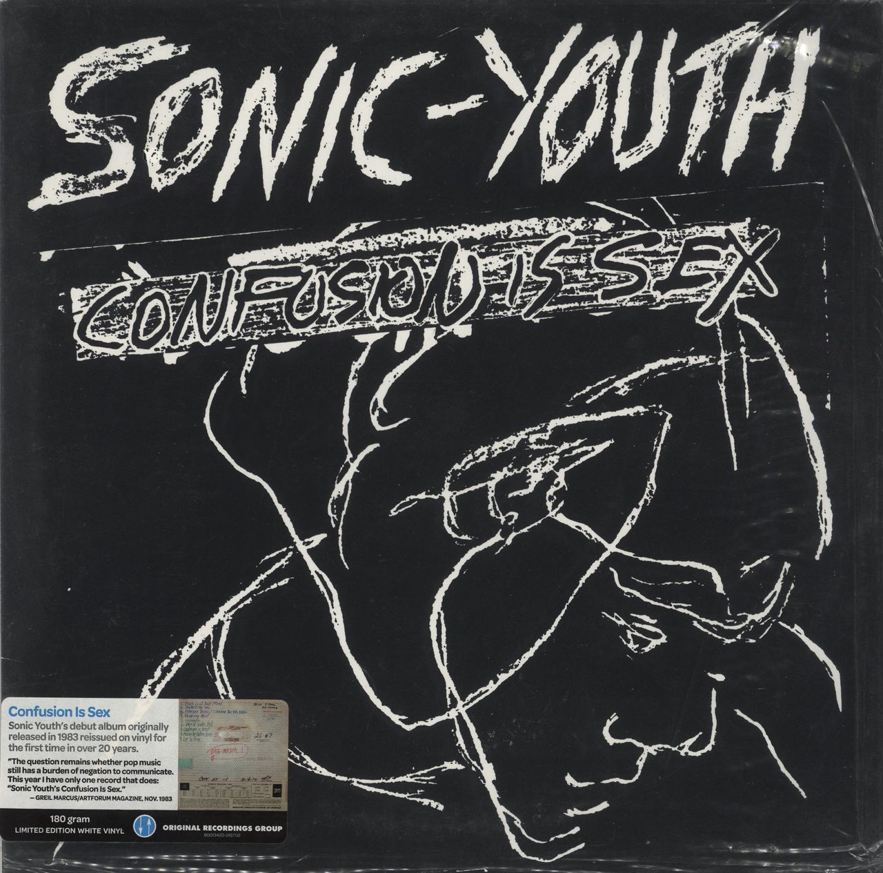SONIC YOUTH Confusion Is Sex (2010 US issue of the 1983 9-track mini-LP debut pressed on White Vinyl, including Inhuman, The World Looks Red & Shaking Hell, glossy picture sleeve with insert. The sleeve shows minimal wear wear & the vinyl is Near Mint. Housed in a picture sleeve and un-sealed performated bag with hype sticker attached)