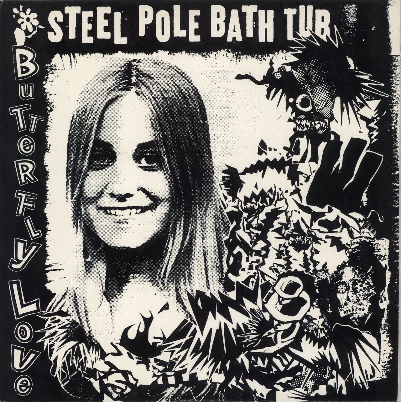 STEEL POLE BATH TUB Butterfly Love (Rare original 1989 US 9-track vinyl LP. Debut album from the American experimental rock band. Picture sleeve includes lyric insert and Boner Records merch insert. Side A has an intentionally locked groove at the end. The sleeve shows little of its age, with the odd light scuff and some corner creasing/edge wear. The vinyl is in Excellent condition with only a few faint cosmetic paper marks and little sign of play)