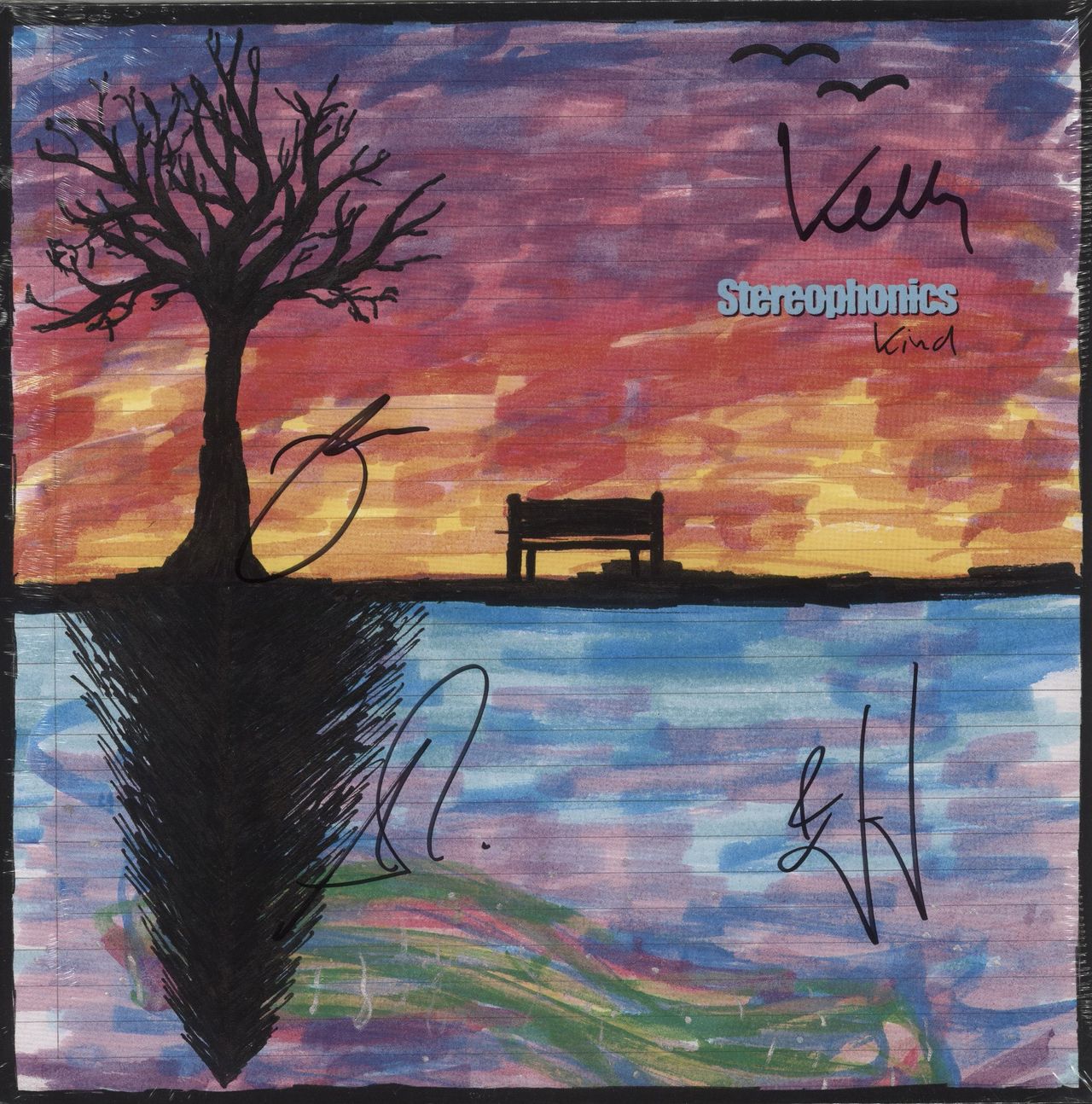 STEREOPHONICS Kind (Autographed 2019 UK/EU limited edition 10-track Heavyweight Vinyl LP, the eleventh studio album from Kelly Jones & co, including the singles Fly Like An Eagle, Bust This Town, Don't Let The Devil Take AnotherDay and Hungover For You. Complete with the original download code voucher and lyric printed inner, and gatefold picture sleeve. The sleeve has been fully signed by Kelly Jones, Richard Jones, Adam Zindani and Jamie Morrison in a blackmarker pen, and remains sealed with a barcode sticker on the back)