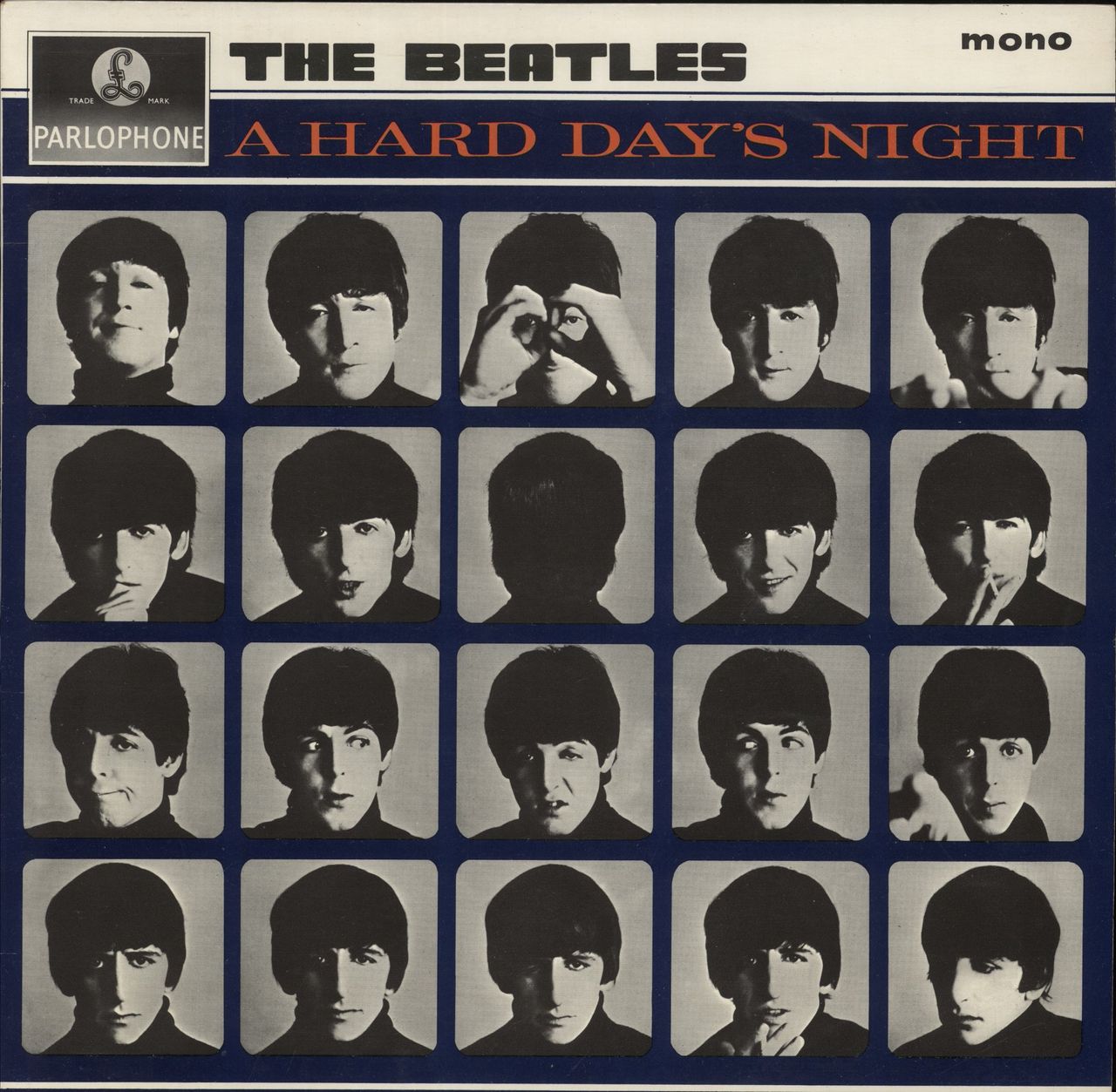 THE BEATLES A Hard Day's Night (Rare 1964 UK first press 13-track MONO vinyl LP on the black & yellow Parlophone label with 'Sold In The UK', 'Recording First Published' & 'Parlophone Co' label text & 3N/3N matrices. This copy comes housed inthe ususal Garrod & Lofthouse flipback picture sleeve with mid sized 'mono' logo on the front & rounded ended flipbacks, & 'Patents Pending' text on the bottom flip, however by a chance manufacturing error, has escaped the ususal laminating process, leaving it with a slightly glossy/silky front. The condition of the sleeve is superb with no real sign of age save for a couple of very faint spots of foxing to the reverse, whilst the front is clear, free from creasing or laminate lift and guaranteed to remain so for all eternity if kept in the correct fashion. The vinyl itself has light scuffs leaving it Excellent. A wonderful item and quite possibly unique! PMC1230)