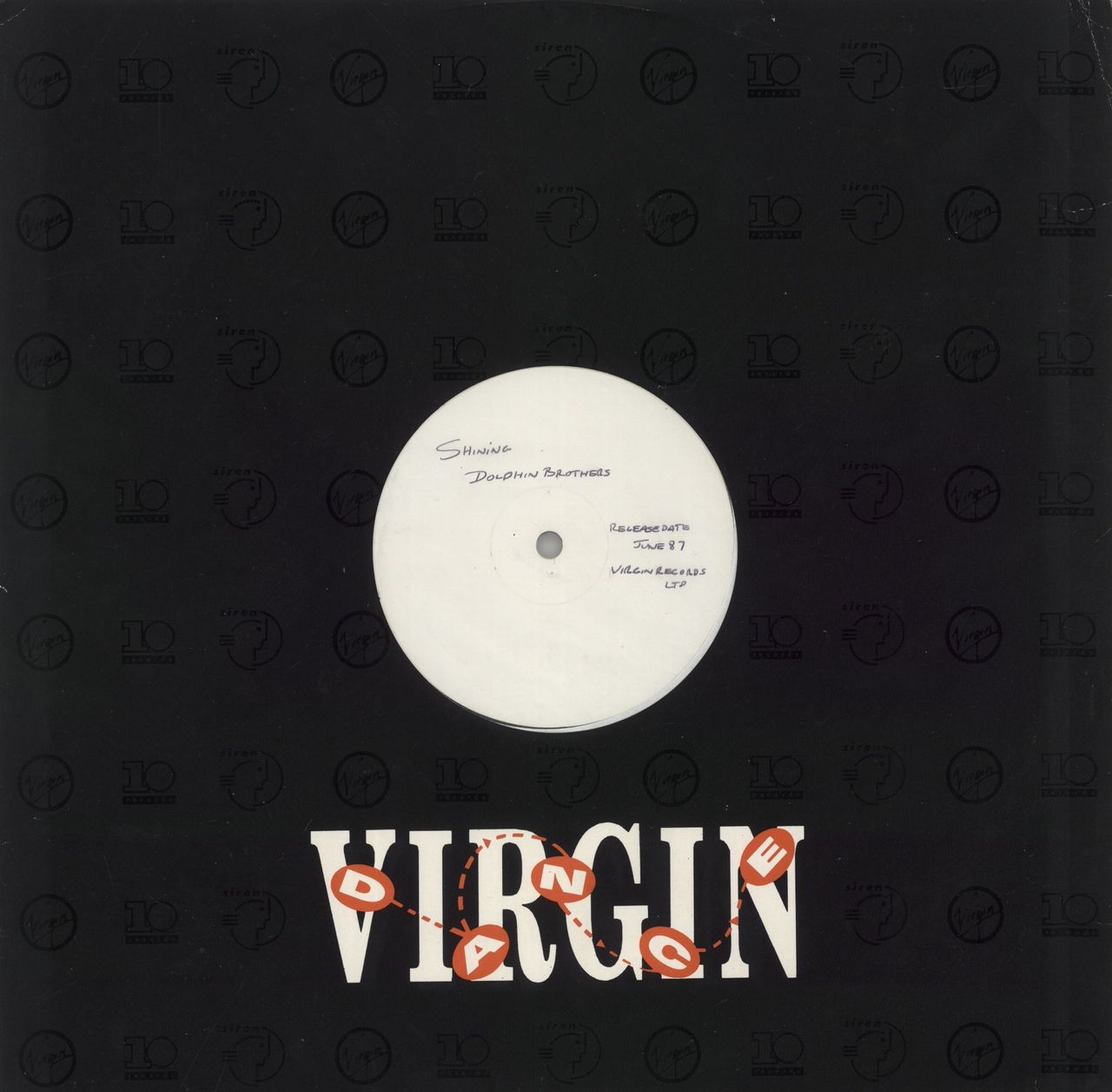 THE DOLPHIN BROTHERS Shining (1987 UK Virgin 3-track white label promotional vinyl 12" from Steve Jansen & Richard Barbieri [ex-Japan], including the Am Ex Mix and Original Version plus My Winter. With handwritten 'A' label featuring artist/title and release date 'June 87', housed in a Virgin Dance die-cut card sleeve VS96912)