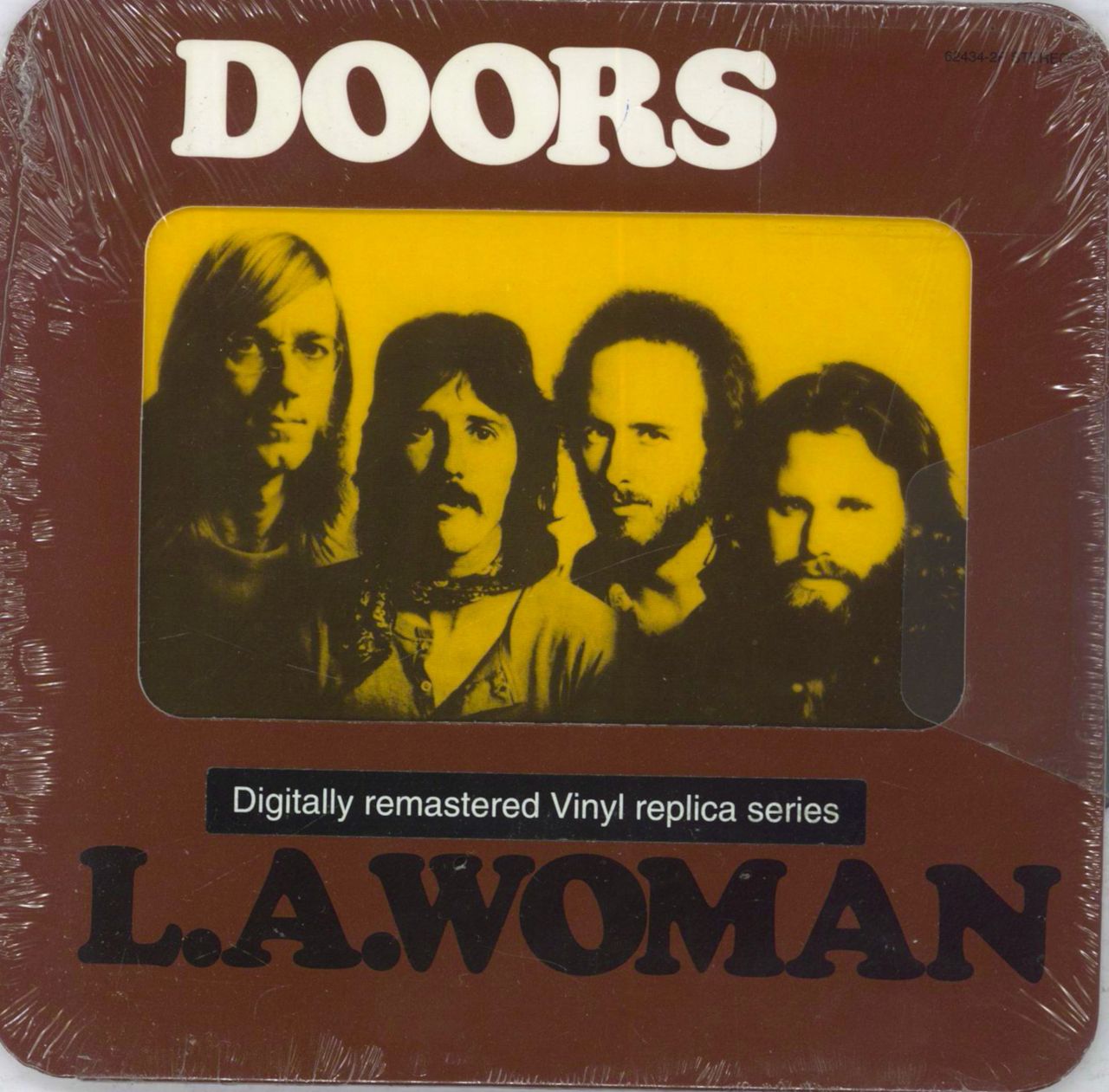 THE DOORS L.A. Woman (Sealed 2000 US 10-track CD in the digitally remastered vinyl replica series, the classic 1971 album housed in a mini-LP style card sleeve reproducing the original LP design to a tee with radius corners, embossed "Doors" text, front cut-out window with transparent plastic on which the band photo is printed black half-tone & the disc is contained in a yellow radius corner liner which provides a yellow background to the cover image when inserted into the sleeve.Sealed from new in the shop stickered shrinkwrap 62434-2F)