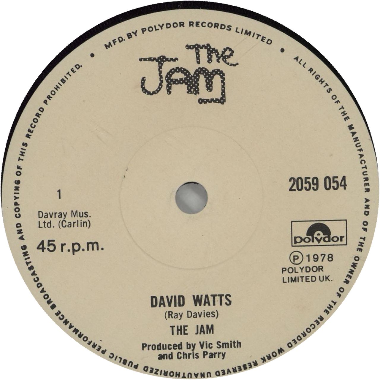 THE JAM David Watts (1978 UK paper label 7" single, also including 'A' Bomb In Wardour Street, plain die-cut paper sleeve. The vinyl remains in Excellent condition with just the odd minor cosmetic sign of play)