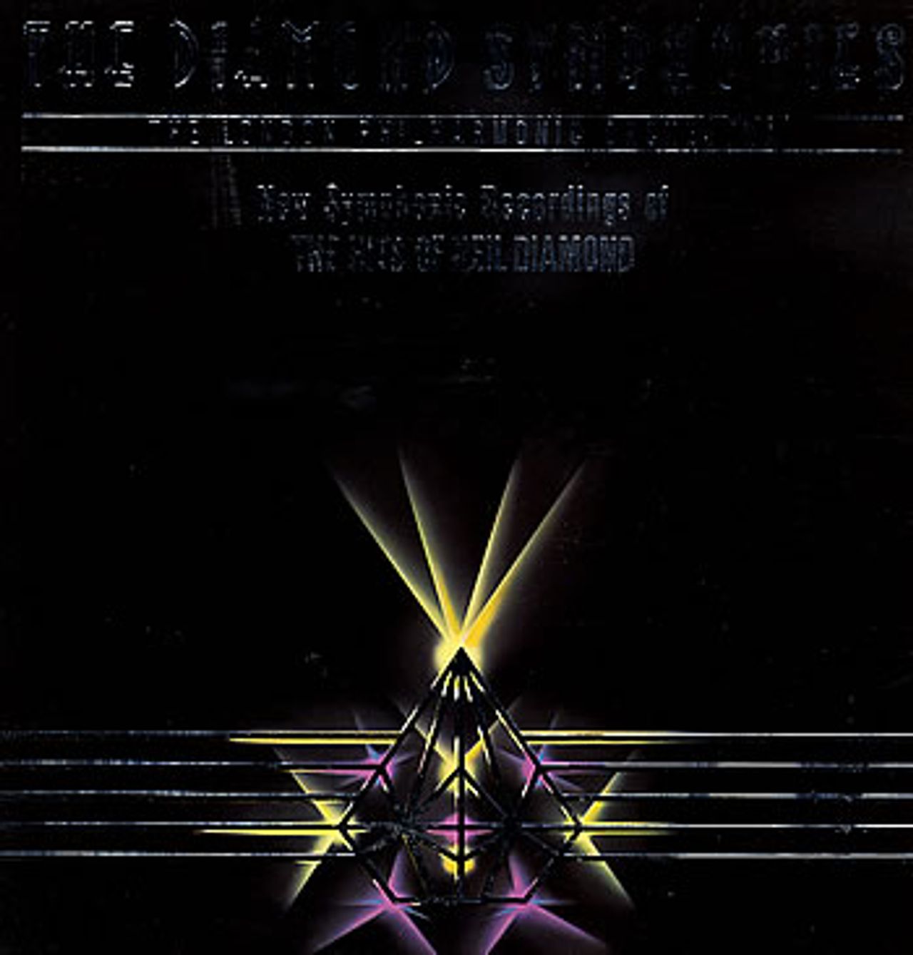 THE LONDON PHILHARMONIC ORCHESTRA conducted by JIM PARKER The Diamond Symphonies (1980 UK 17-track LP featuring symphonic recordings of the hits of Neil Diamond, silver embossed picture sleeve. The sleeve shows just a little light shelfwear with a bit of edge scuffing & the vinyl remains near 'as new' with little sign of play RTL2045)