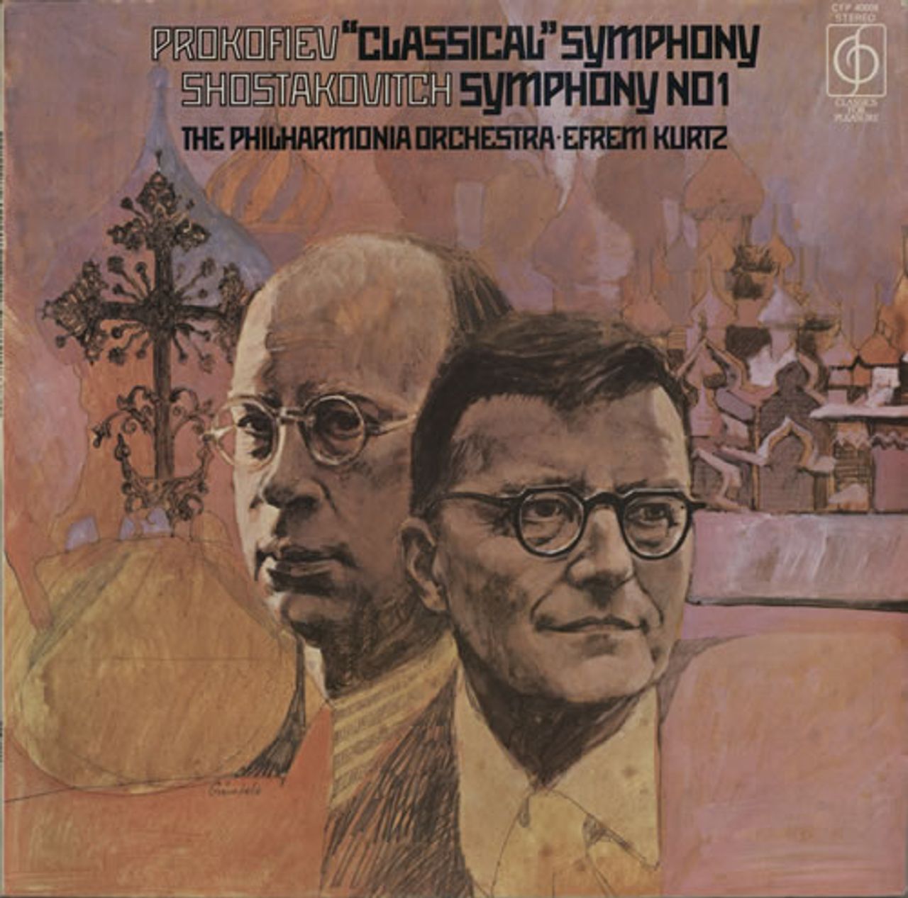 THE PHILHARMONIA ORCHESTRA conducted by EFREM KURTZ Prokofiev: 'Classical' Symphony / Shostakovitch: Symphony No. 1 (1972 UK stereo LP issue of the 1958 recording, front laminated picture sleeve. The sleeve shows just a spot of paper scuffing& the vinyl is near mint CFP40004)