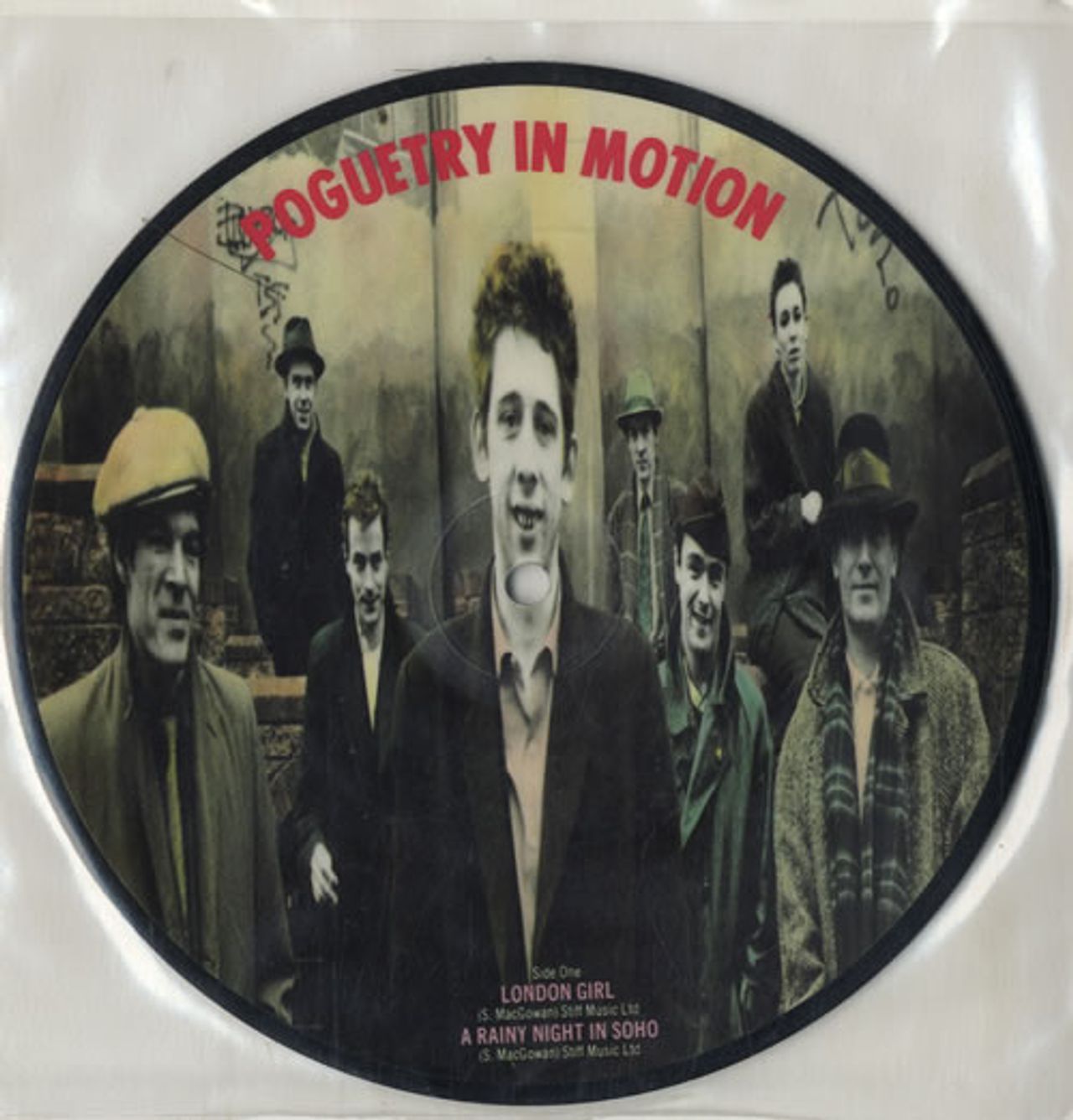 THE POGUES Poguetry In Motion (1986 UK limited edition 4-track 7" Picture Disc EP including London Girl, A Rainy Night In Soho, The Body Of An American & Planxty Noel Hill, clear PVC sleeve PBUY243)