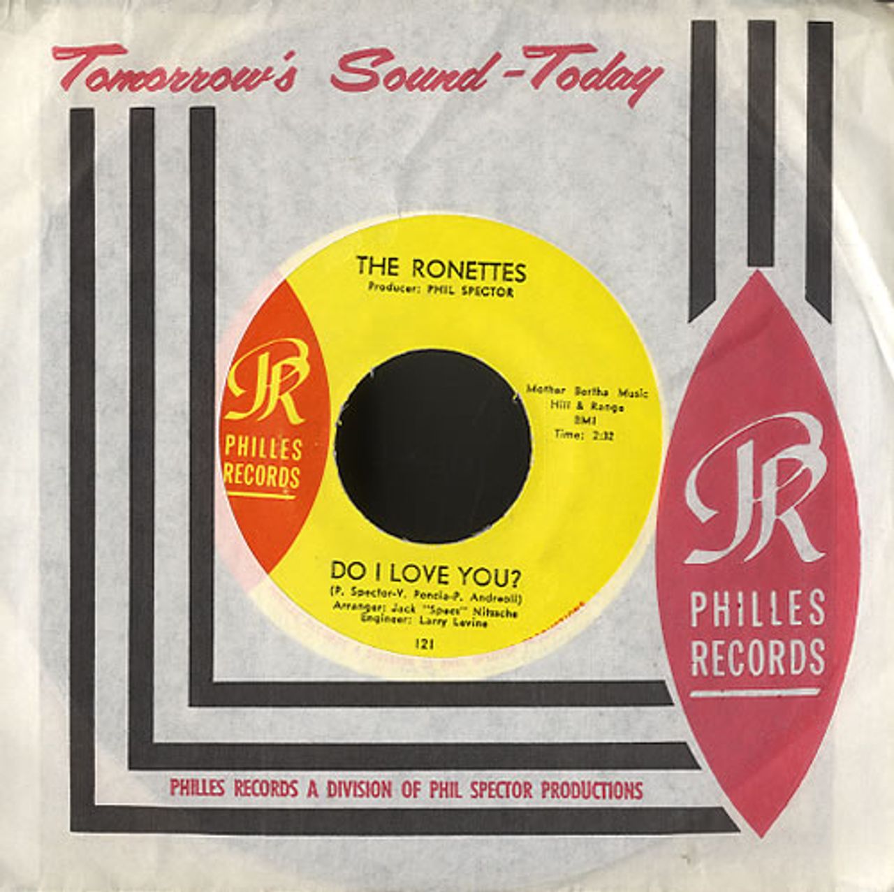 THE RONETTES Do I Love You? (Mid 60s issue of the 1963 US wide centred 7" vinyl single on the yellow & red label, also includes Bebe And Susu, housed in a Philles Records company die-cut paper sleeve. The vinyl shows light signs of play but remains in excellent condition for its age)