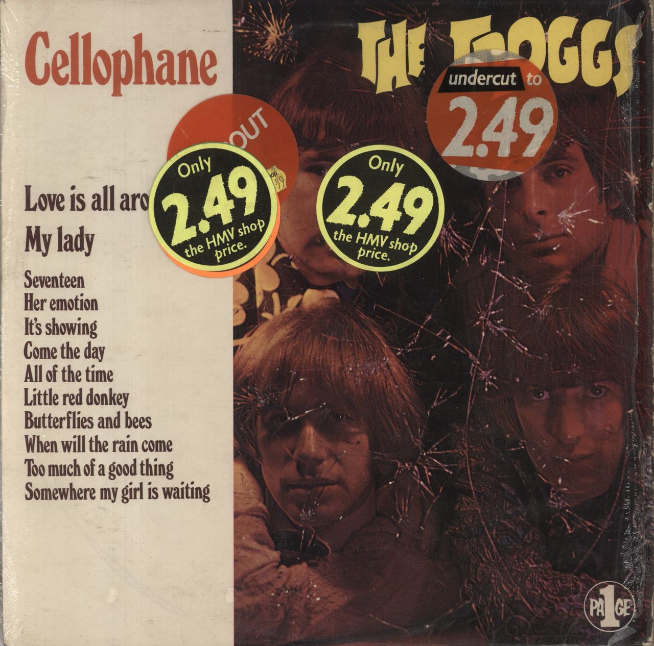 THE TROGGS Cellophane (1967 UK first issue 12-track MONO vinyl LP, a fantastic copy of the band's fourth studio album, featuring the classic single Love Is All Around, front laminated flipback picture sleeve. The sleeve is still in its openedvintage price stickered shrinkwrap leaving just light wear, whilst the vinyl has just a few spindle marks and little sign of play on the vinyl leaving it a solid Excellent POL003)