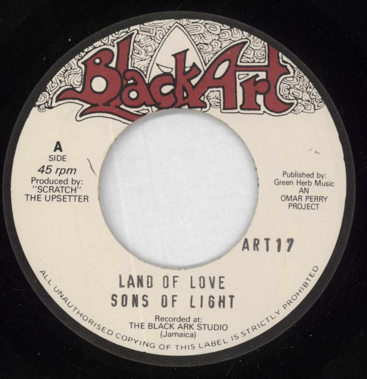 SONS OF LIGHT & THE UPSETTERS Land Of Love (1998 UK issue of the 1977 split 7" vinyl single with wide-centre. Housed in a plain die-cut sleeve. The vinyl remains in Near Mint condition)