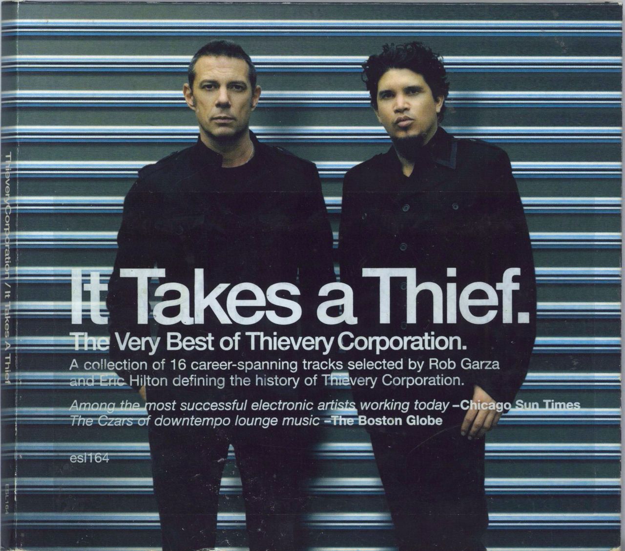THIEVERY CORPORATION It Takes A Thief (2010 UK CD album - Dynamic DJ duo Thievery Corporation present their first 'Best Of' album, 'It Takes A Thief'. The album is a collection of tracks specially selected by Rob Garza and Eric Hilton for longtime fans and for music lovers who have heard of Thievery Corporation but may have never listened to the band. The 16-track collection features 'Lebanese Blonde', the beautiful song used on the Grammy award-winning Garden State Soundtrack, as well as 'Sound the Alarm', the funk infused track that has become a staple opening track for the band's live shows. The disc has just light signs of play and comes issued in the fold-out card picture sleeve)