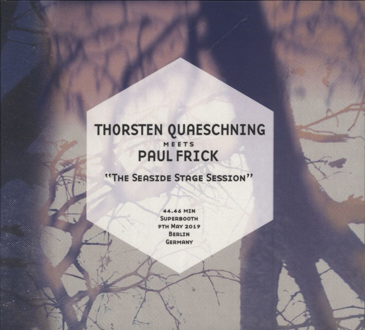 THORSTEN QUAESCHNING meets PAUL FRICK The Seaside Stage Session (2019 German limited edition 8-track CD album including over forty minutes of ever evolving musical constellations from a collaboration which sees Thorsten Quaeschning [TangerineDream] and Paul Frick [Brandt Brauer Frick] pushing Berlin School heritage further, using classic and modern synths, pianos, electric guitar, an ever rolling Moog Voyager bass and subtle beats and blips, all recorded live on the 9th May 2019 at Superbooth Berlin. The disc looks barely played issued in the custom gatefold card wallet picture sleeve PRO.02)