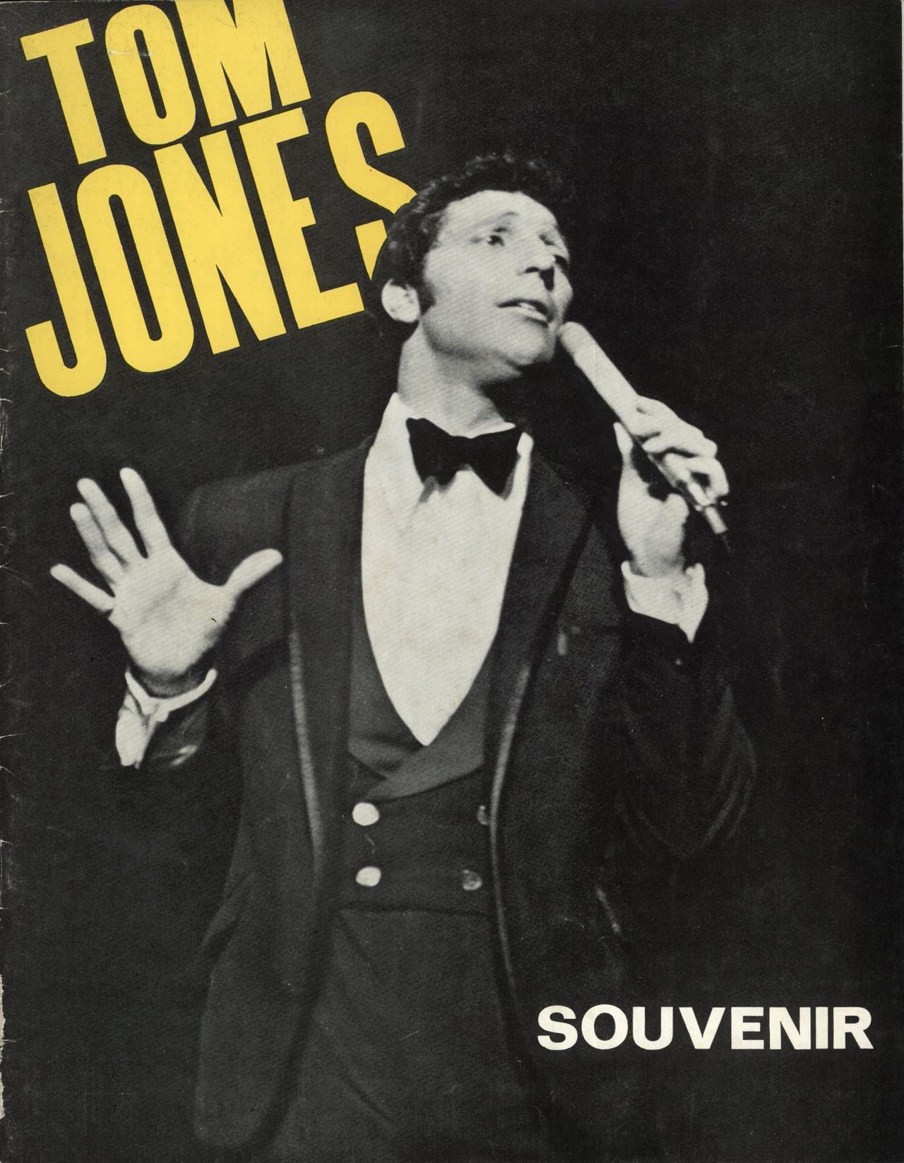 TOM JONES Tom Jones Souvenir (Official 1968 UK 16-page concert programme for his shows on June 7th to August 3rd that year in Bournemouth, with Roy Castle as support. The booklet also includes mini biographies of the performers with a wealth ofpictures. This copy remains in superb condition with just a little light creasing to the cover to show for being over fifty years old. This example also includes a rare flyer for the run of shows at the venue along with two ticket stubbs for the 29th July show, stapled to the front page)