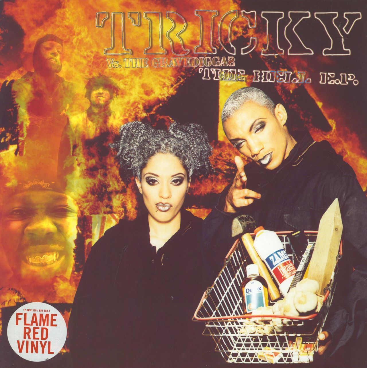 TRICKY VS THE GRAVEDIGGAZ The Hell (1995 UK 4-track 12'' EP pressed on Flaming Red Vinyl, featuring the Original Mix with the classic Ike's Rap II sample, The Hell & Water Mix plus Tonite Is A Special Nite - ChaosMass Confusion Mix & Psychosis, housed in a hype stickered picture sleeve. The sleeve shows minor edgewear, whilst the vinyl looks barely played; remaining Near Mint 12BRW326)
