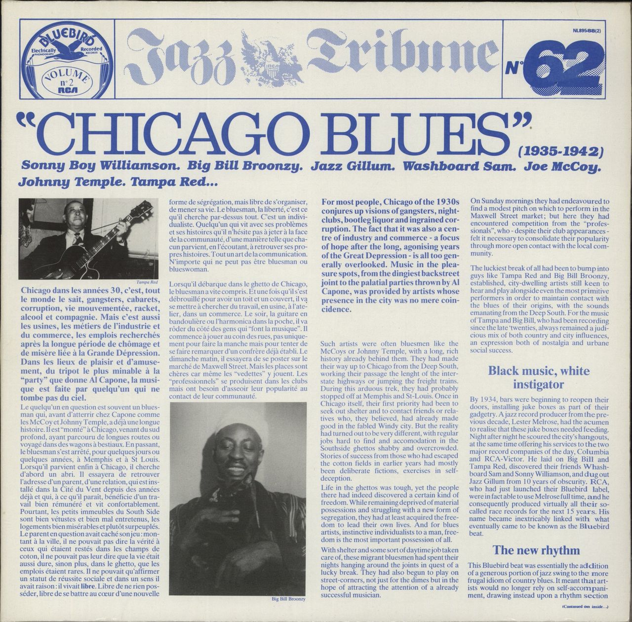VARIOUS Chicago Blues - 1935-1942 (1985 German 34-track double LP compilation, documenting some real-deal Blues from the midwest by the likes of Sonny Boy Williamson, Big Bill Broonzy, Tampa Red & Washboard Sam, gatefold picture sleeve with extensive notes in French & English. The sleeve shows minimal shelf wear & the vinyl appears near mint)