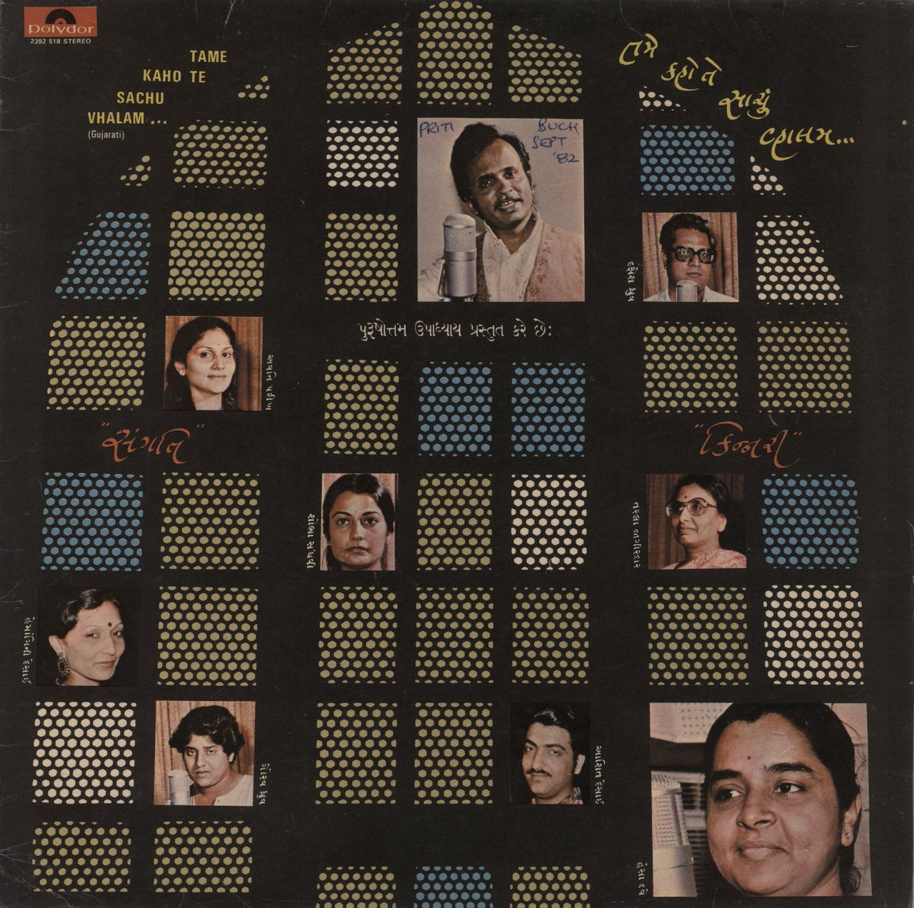 VARIOUS-BOLLYWOOD Tame Kaho Te Sachu Vhalam (1980 Indian 10-track vinyl LP compilation, includes performances by Uday Mazumdar, Hansa Dave, Shivkumar Nakar and others, picture sleeve. The sleeve has a name annotation to the front and shows general wear, whilst the vinyl is Excellent with minimal sign of play)