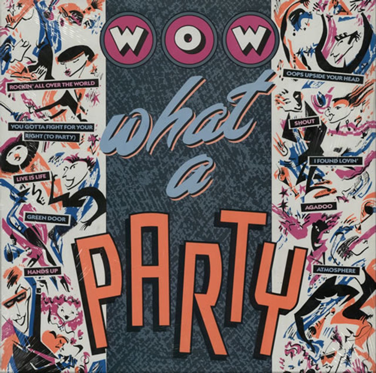 VARIOUS-POP Wow What A Party (1987 UK 24-track double vinyl LP compilation, featuring a right royal hodge podge of pop nonsense from the likes of Russ Abot, Bad Manners, Black Lace, Gay Gordon & The Mince Pies and even the Beastie Boys. The sleeve is superb along with the vinyl NE1388)